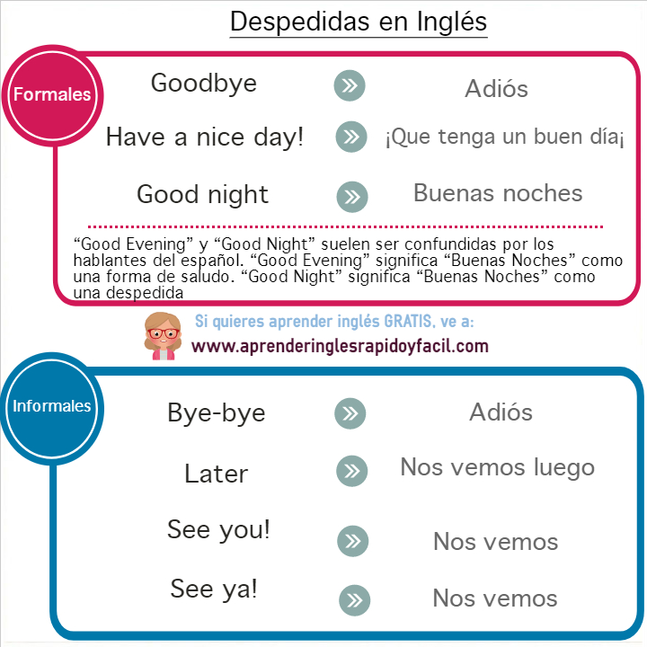 - Las despedidas "See ya" y "Later" son muy informales; deben ser utilizadas con personas muy cercanas.